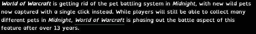 >>732192952>>732204032Oh, and I forgot that Blizzard is axing pet battles because they can't be bothered to do the bare fucking minimum now. The ultimate opportunity to combine housing and pet battles and they fuck it up.