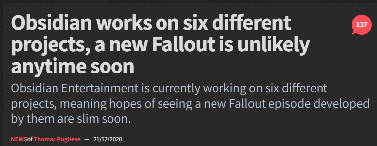 >>732208030>so they stop desecrating the name of the actual Obsidiansuch a fucking nerdy thing to say Jesus Christ. Also, if they die tomorrow, won't the "actual Obsidian" still be "desecrated" since they released a bunch of shitty game under that name? the fuck is this logic