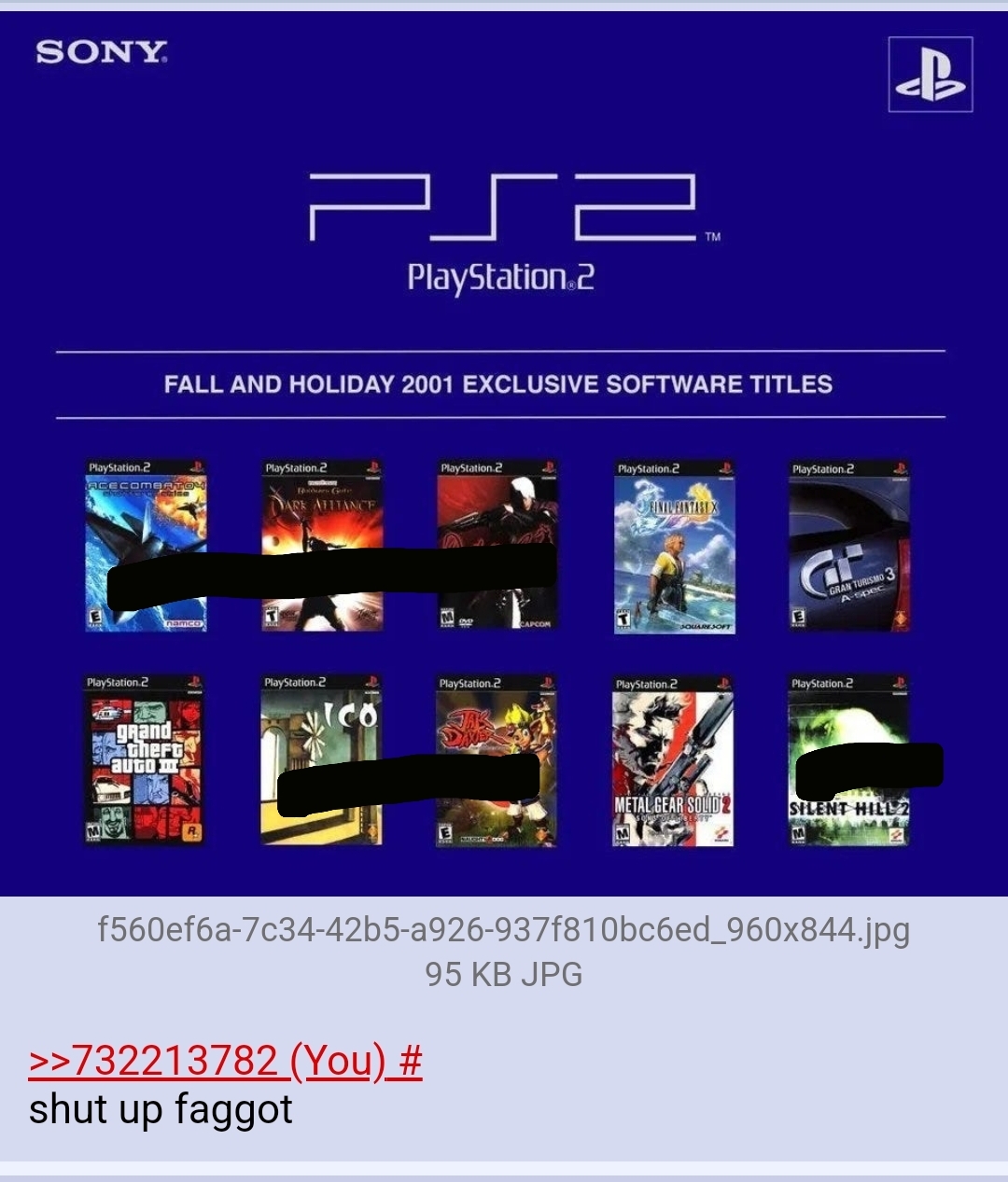 >>732215294PS2 fans are objectively the most brown and impoverished of all console fans.