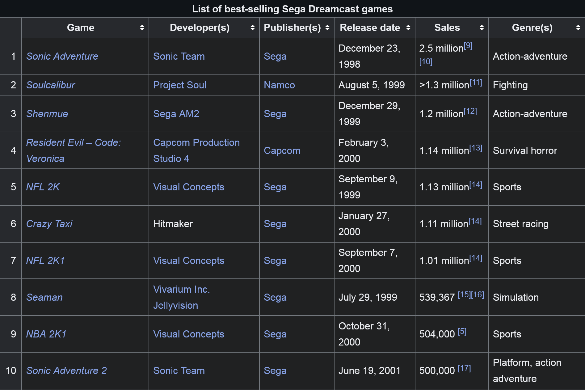 >>732220528>3 of the top 10 most popular dreamcast games are sports shovelwareare you sure about that?