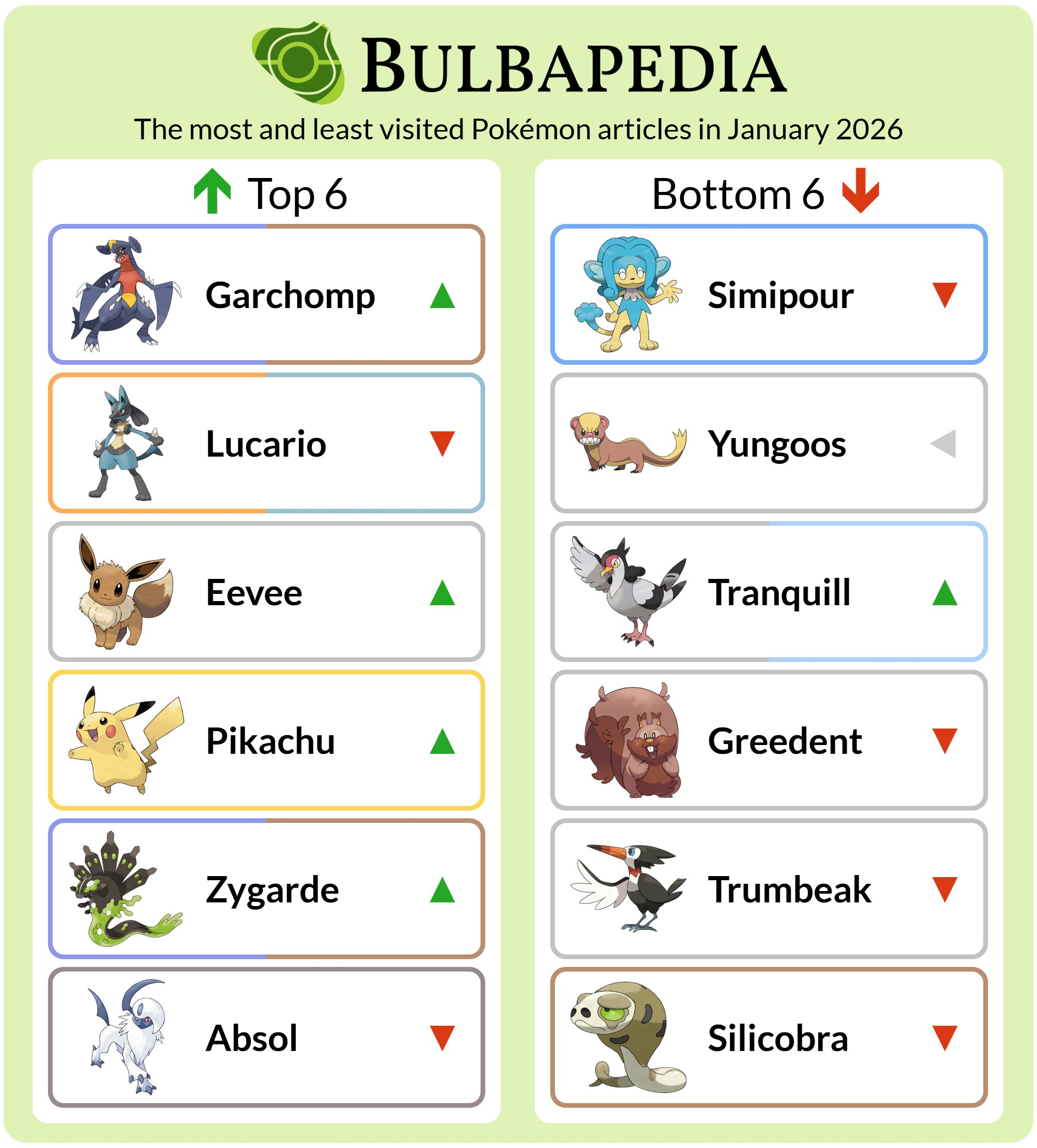 Most googled pokemon jan. 2026