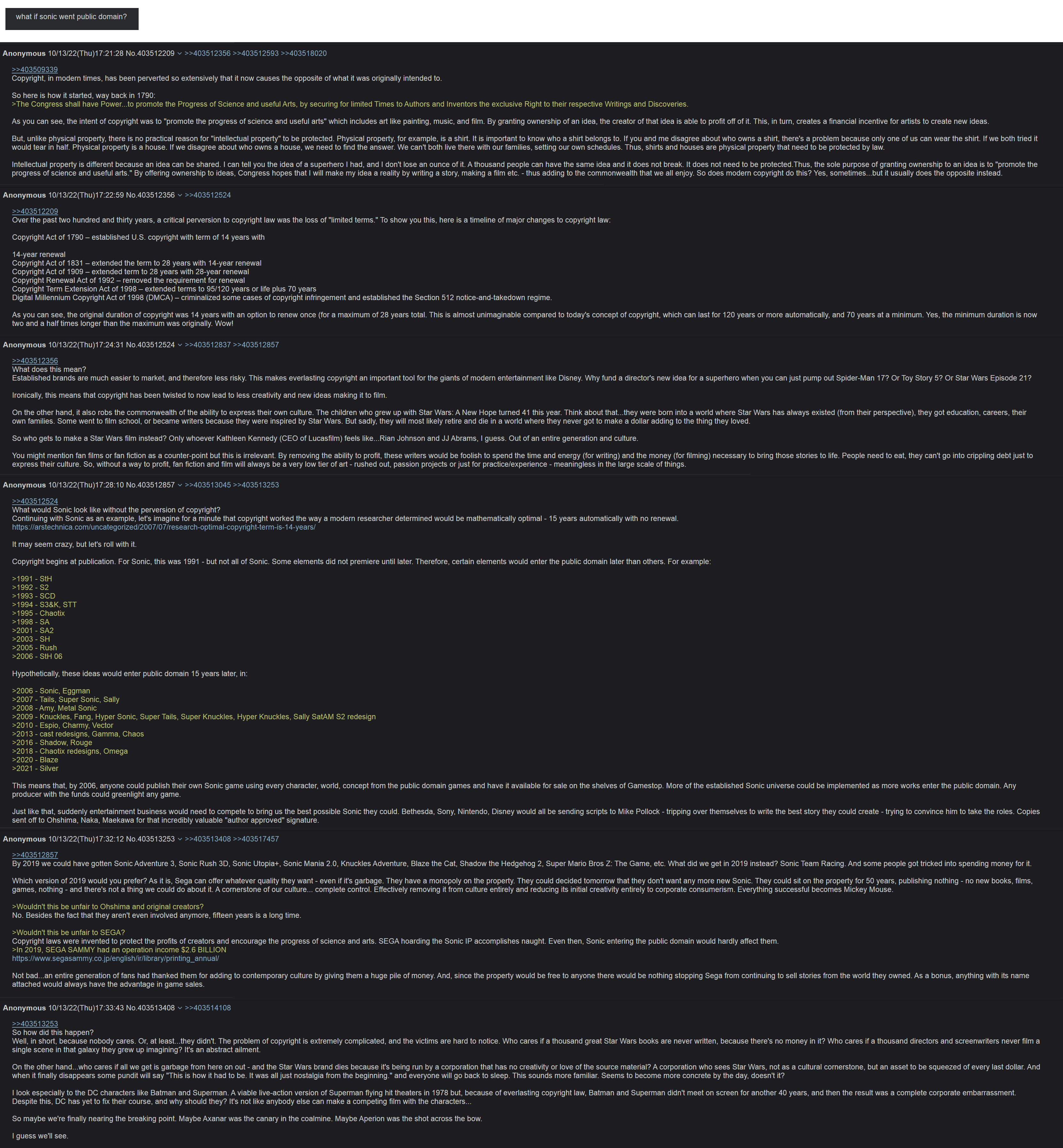 >>732219936>If the company that owns somethingShould they own it? Suits at sega didn't make or even program Sonic. Half of them probably don't know what it even is beyond being one of the franchises on their spreadsheet.Do you really want those lardasses deciding what's canon or not?