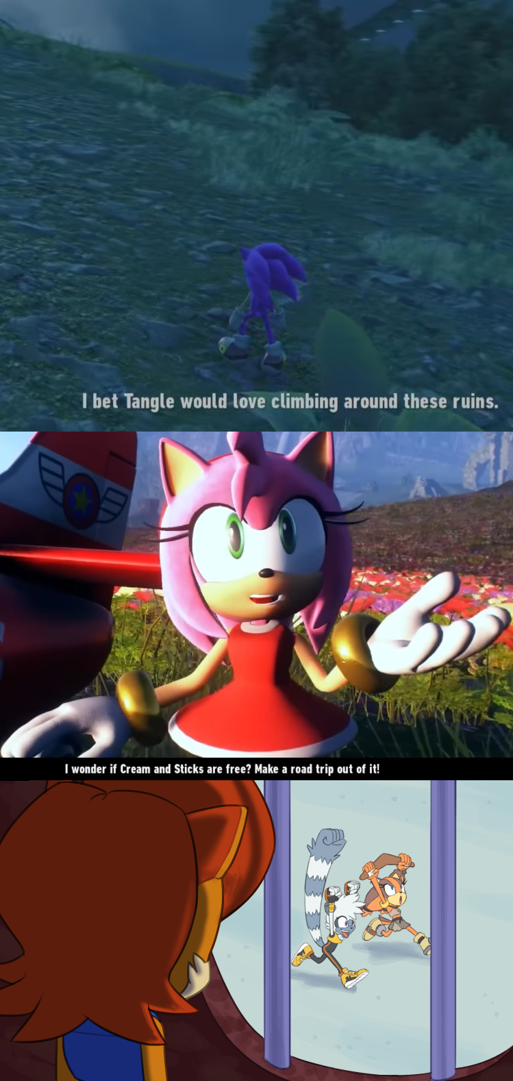 >>732235148>Amy getting reduced to generic "I fight for my friends" character, in order to avoid supposed "problematic" portrayals of female charactersLove this revisionism as if people haven't been complaining about Amy's characterization in Sonic Heroes and 06 here for years.
