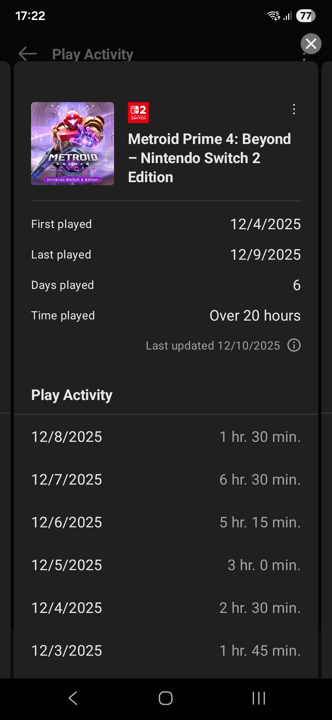 >>732224071Nintendo Store.For some reason it also includes an activity log that goes all the way back to the 3DS/Wii U era.For those games it only shows total playtime, but for Switch/2 games it also shows playtime by day.