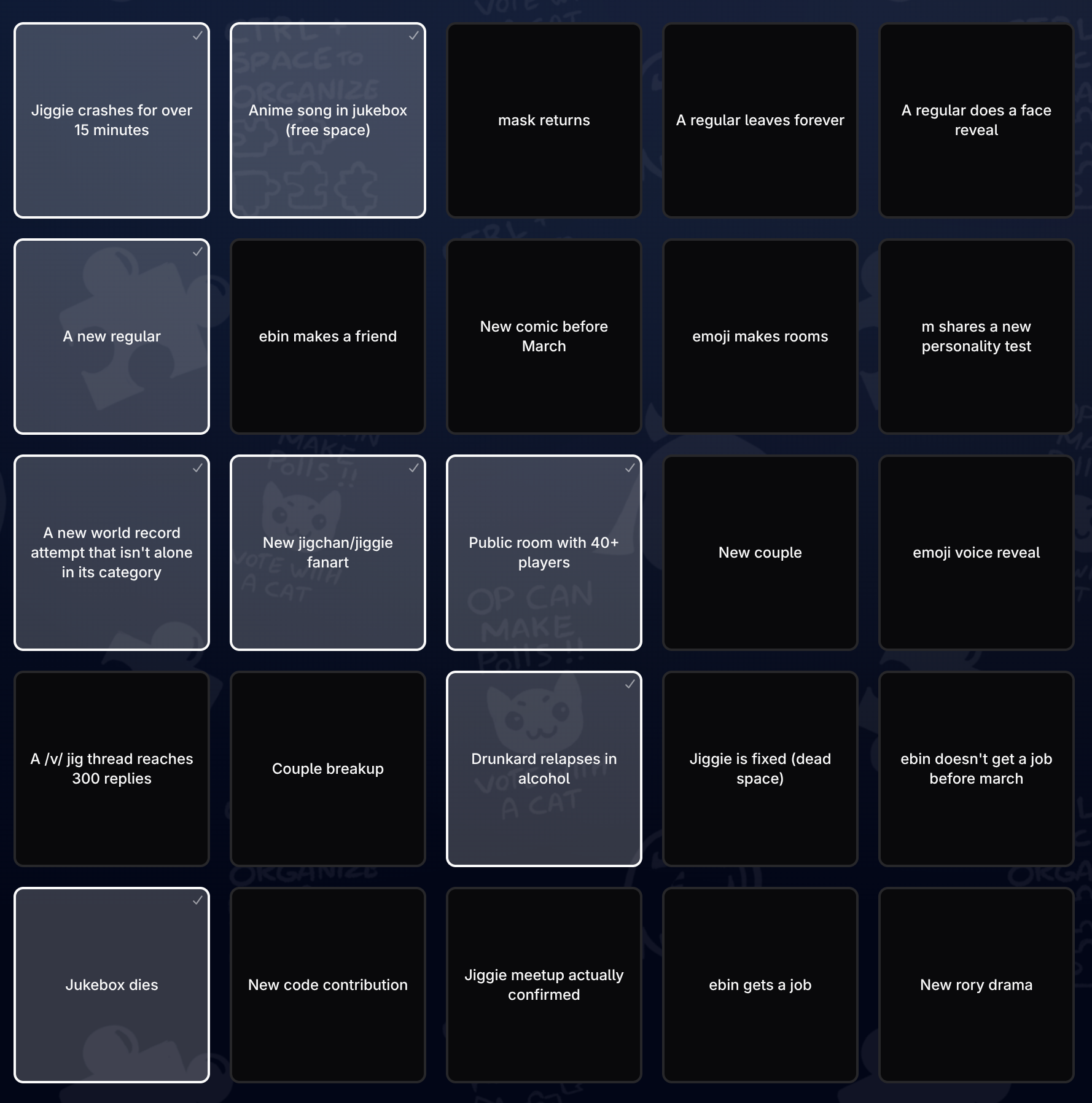 How is bingo even supposed to work? I can make custom boxes, and who's going to tick those off?
