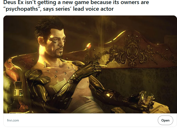 >thread isn't the same generic "malkavian mod" line spam>no repliesGood to know /v/ doesn't actually like Deus Ex