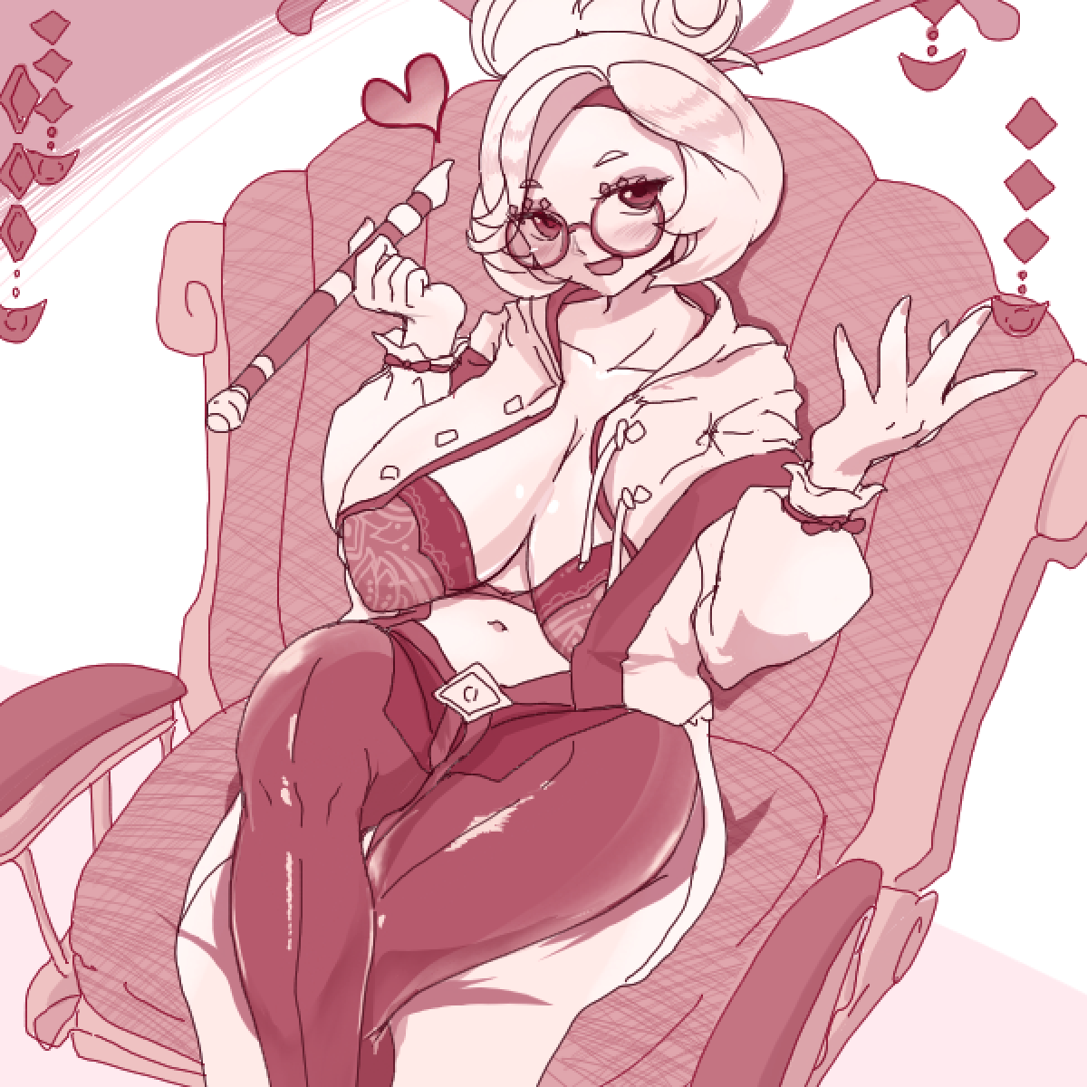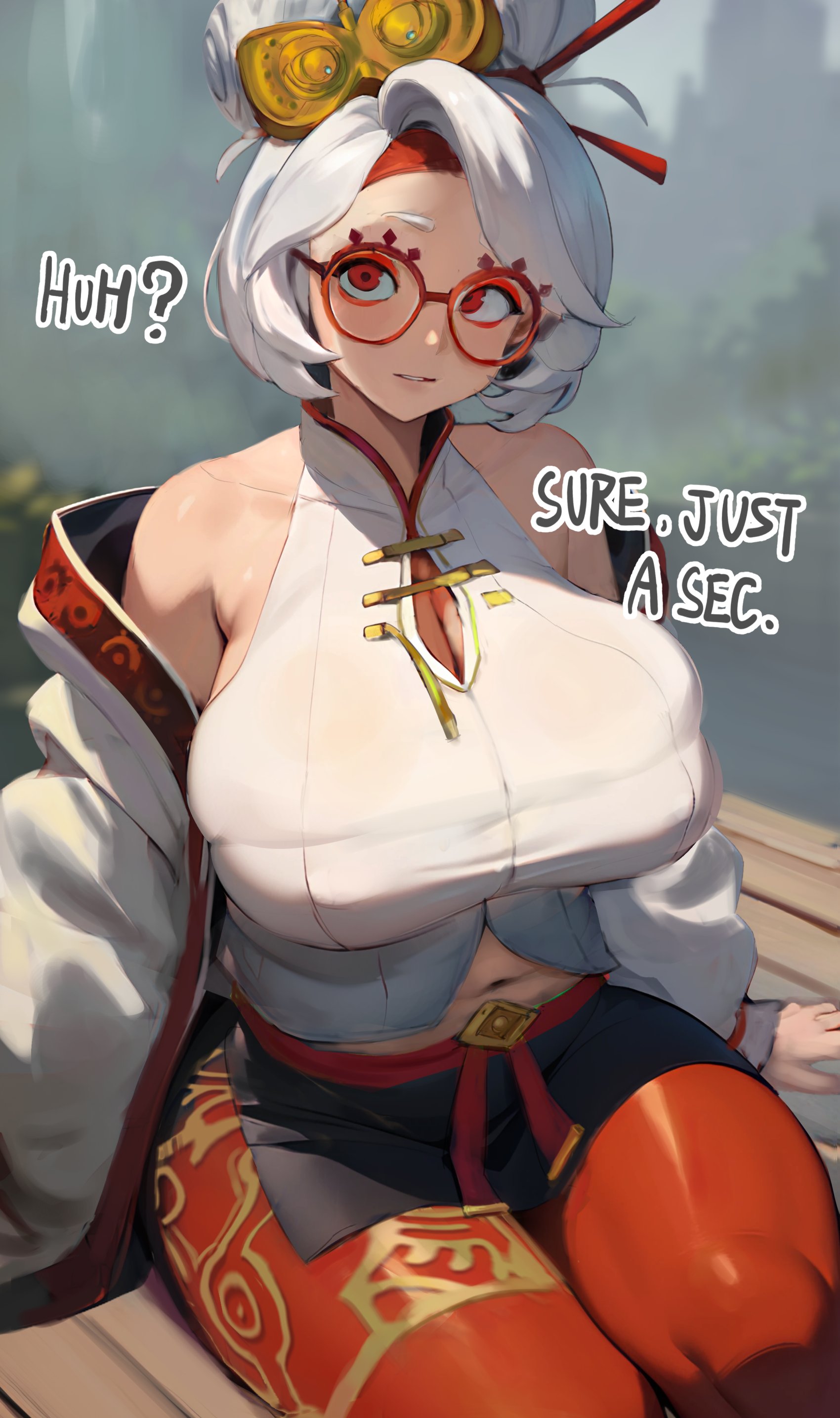 >>732298000Yes, it's also meant to imply that her breasts are actually slightly too large for her outfit. Despite her candid attitude I'm pretty sure Purah is 100% aware of what she's doing.