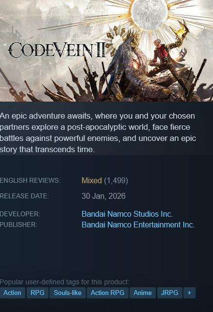 I'll post this again....But it's true that the sequel doesn't have scenes like those. In any case, censored pantyshots or not, Code Vein II still has some fan service of course, in fact, the fan service is one of the reasons why it has its age rating in Japan and America.