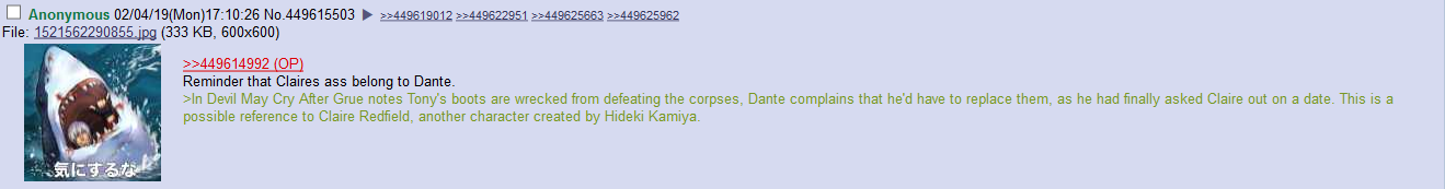 >>732240892>Guy looks like a more business version of Clare's older brother who effectively raised her in lieu of a father or even possibly her actual father since we don't know what he looks like.>This is apparently the guy she's attractive toWhat is it with capcom leads and pseudo incest kinks?