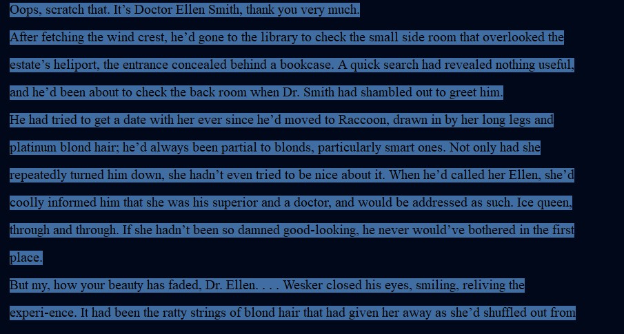 >>732236664A woman wrote those, btw. S.D Perry, I have them all. They're pretty cool; you'll like Nemesis if you didn't like 3make because she probably played it herself and follows the pacing of the game pretty-much beat4beat. Pitiful they changed her outfit when this author did no such thing.> kept outfit, said it helped her move quicker> heard the UBCS fighting zombies a few blocks away and jokes they were all hopefully 6ft tall firefighters with tans and perfect smiles come to save her> the Nemesis is 9mm mag-dumped in the face on the cable car, blowing several of his exposed teeth out> Carlos "cleans up" an infected Jill while she's unconscious, himself sporting bruised or broken ribs from a rocket impact behind him during the clock tower Nemesis fight.> Carlos uses later passes out from exhaustion and pain in the chapel; book Carlos does the whole hospital section on CAUTION status: he's a tough mf > Jill fights the Gravedigger, almost pukes from how it smells when charred and burnt lmao> Nicholai muses over shooting and raping Jill before making his escape, looking her over and licking his lips before he's chokehold-pulled into the ceiling and killed by the Nemesis