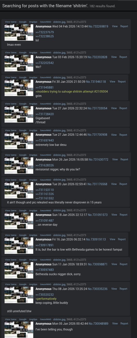I like how everyone says Bethesda sucks, creation engine sucks, etc and yet there isn't a single fucking game like skyrim or fallout not a single fucking one they all fall shortthey might individually do better combat, or graphics, or whatever none of them have npc schedules, none of them have worlds as big with as much stuff in them and none of them have a creation kitthere hasn't been a skyrim killer in 15 fucking years despite bethesda apparently being the most incompetent company ever that is filled with jeets and libtards and literal demons that rose from hell skyrim sold so much across so many platforms that every game company in the world should have scrambled to catch it's flash in the pan and yet nothing has dethroned it explain it