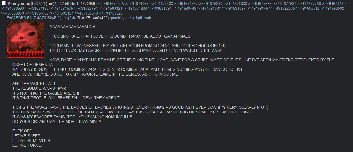 by 3rd gen the writing was on the wall that this series would never innovate, adapt or progress. it was going to be the same thing over, and over, and over again.>and that's a good thing!it could have been, had they put in the effort. look where we are now. consumers are just being taken advantage of with zero effort turds. previous generations have been disastrous, laughable. the games keep looking worse, and all they can do is slap more shallow gimmicks on it to keep its rotting body alive. they even play like they were still designed for the gameboy. stadium was the last time the 3D games even tried, and that one still had the benefit of the times. hell, even back in the day as a kid I was dreaming of stadium basically playing like smash when I looked at the box art, only to find out that oh, it's just the same game but in 3D. this series is one of the biggest disappointments in gaming.