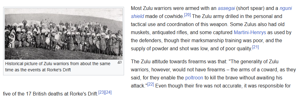 >>732239539to be fair the zulu wars were a british embarrassment and they lost several battles in them