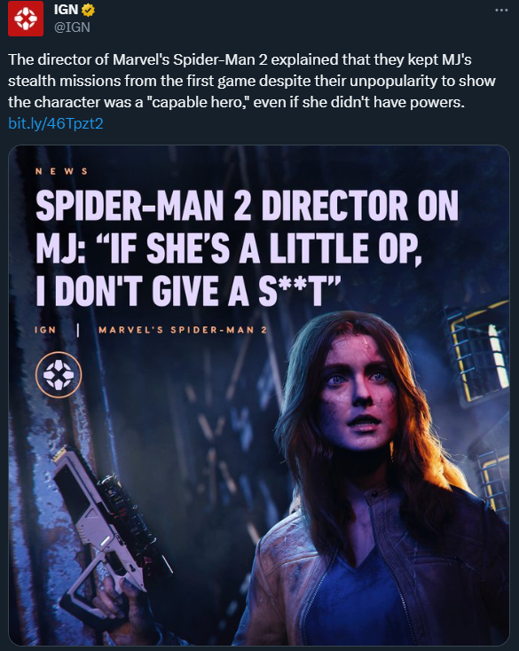 >>732246435First game is good despite MJ, ok I’ll check out the next one. Second game (MM) is moderately ok despite MM and somehow made him almost interesting, ok I’ll check out the next oneThird game is a giant middle finger to everyone who likes Spider-Man every single second, I’m out