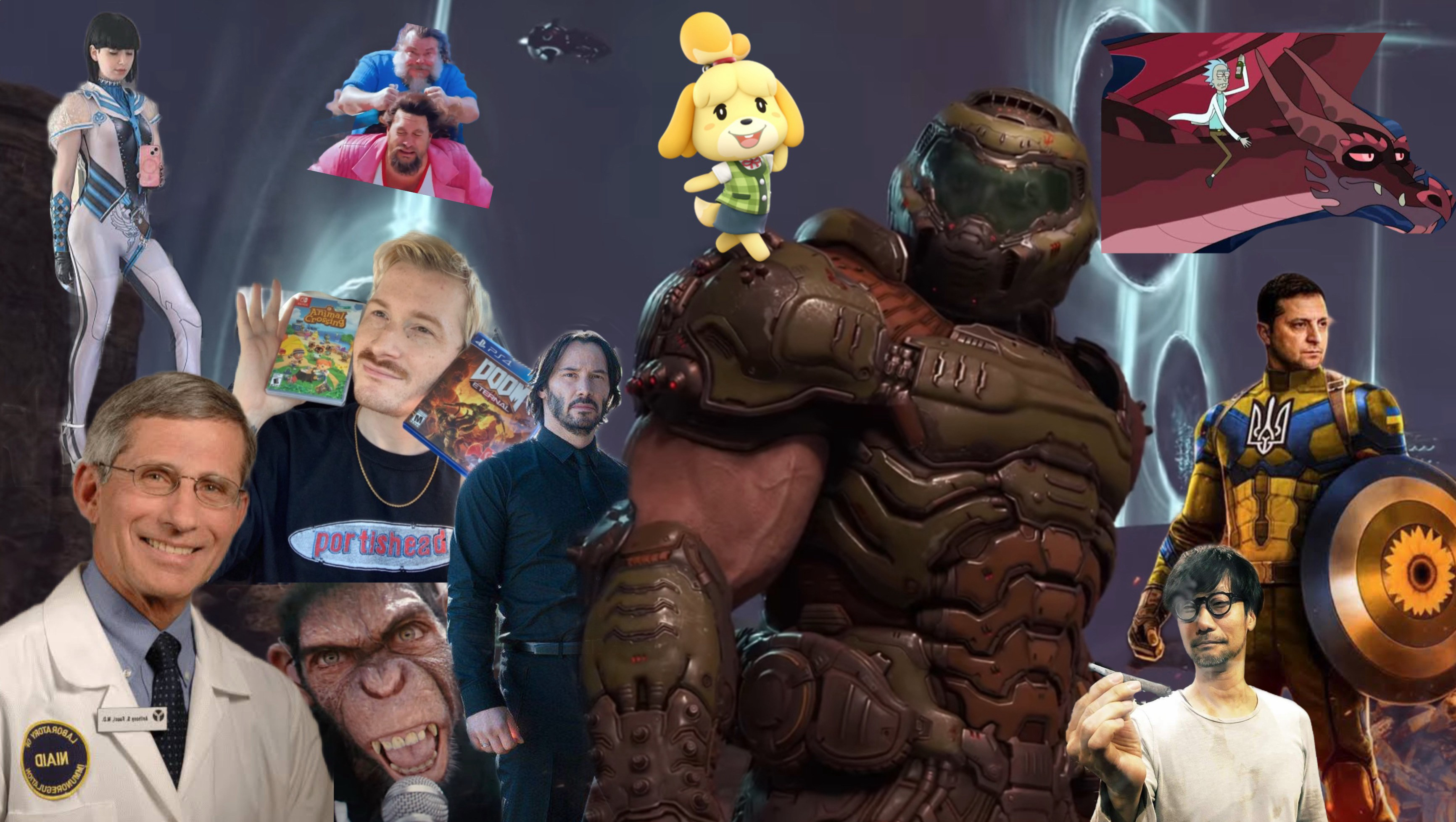 >previously on ZOOM RING: THE EBONIC AGES>doomfolk! You can't beat me! So... I rebelled against Heaven!>*doomguy breathing heavily*>doomie, can you hear me? To your left.>*a portal opens*>*Volodimir Zelensky, Isabelle and Dave Rivera join the battle*>*another portal opens*>K-Kojima-san?!! And…Suzi?!>*SphereHunter performs a bayonetta-like flip while wearing his Eve cosplay from Stellar Blade and lands epically in front of doomguy*>*Another portal features Anthony Fauci, Keanu Reeves and Better Man*.>We must be better...>*from a portal in the sky appears Doomguy's dragon who was thought to be dead and in comes Rick Sanchez*>Who is a good boy? You you are a good boy! Wubba lubba dub!>*Minecraft's Jack Black and Jason Momoa fall from the sky doing a waterdrop*>I... AM KYIIIIIIV>*Satan watches in bewilderment*>You can't beat me!>I'm surprised that a fella like you is hurting people, come to your senses, you're behaving like Grummz! -says dave rivera>You can be better than this...- says better man>*Satan orders his army to attack*.>*Captain Zelensky moves into attack position*.>I've dealt with tyrants like you and Putler before!>*Doomguys looks seriously*>DOOMVENGERS!>ASSEMBLE...>*Avengers endgame battle theme metal cover by ROYAL BLOOD*>*Everyone races in an offensive that will decide whether good or evil will win*>*Dave rivera orders his followers in Xitter to overload hell's defense systems*>*Isabelle violently attacks the infernal forces*>I may be wholesome but I'm also tough!>*Anthony Fauci throws syringes like kunais*>Try this, chuds!>*Kojima attacks a giant demon using his epic mecha*>Just like evangeliom! -says keanu reeves>*doomguy and satan jump in front of each other ready to finish this epic battle*