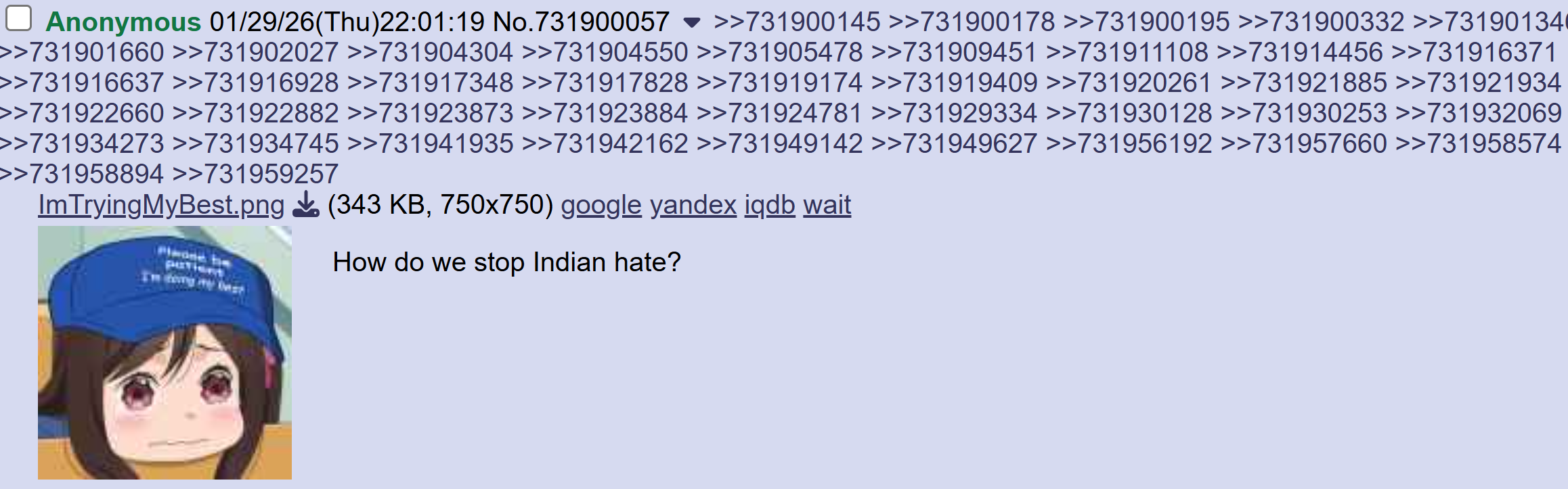 nobody:/v/: let's hate India and Indians for literally no reason at all