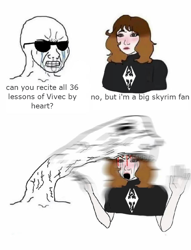 I don't talk to women beyond work and school. I keep it civil. I've only dated one person and she was a female. It was a bad experience overall. I don't intend to date anymore or pursue sex. Nobody in my gaming groups is female so I have nothing to say about playing vidya with them. I've never played games with a woman, and I probably never will. (Which I think is a good thing overall.)