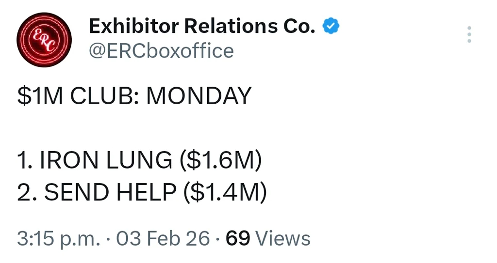 >>732256418But it beat Send Help today. Which is pretty funny that a YouTuber made a movie that is topping a movie from a well known and liked director.