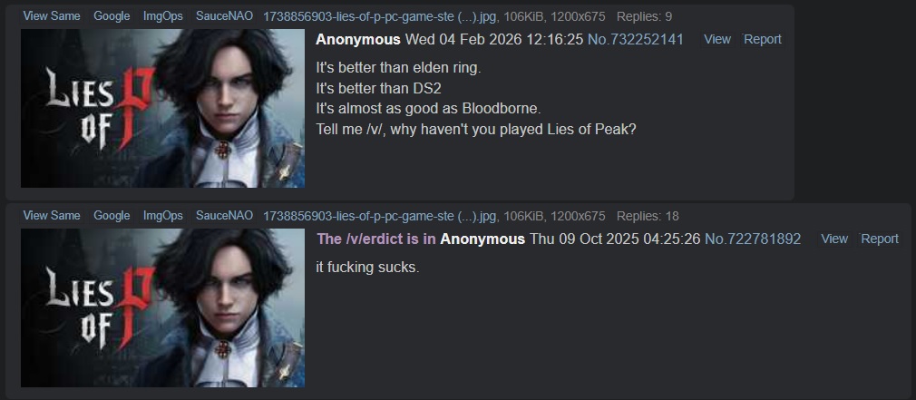 It's better than elden ring.It's better than DS2It's almost as good as Bloodborne.Tell me /v/, why haven't you played Lies of Peak?
