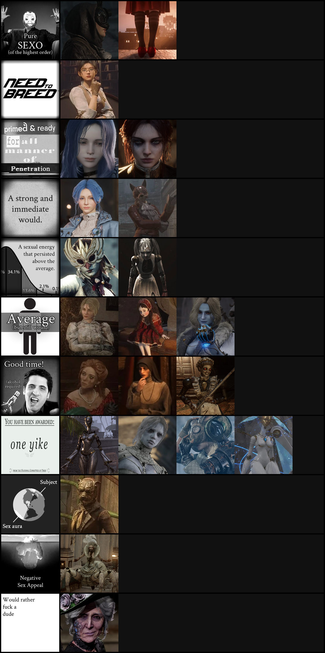 >>732258770The people (like me) who shill nioh and lies of p don't pretend nor categorize them as soulslike so there's no problemI call them niohlikes or if parry-heavy, parryslop (love me parryslop)