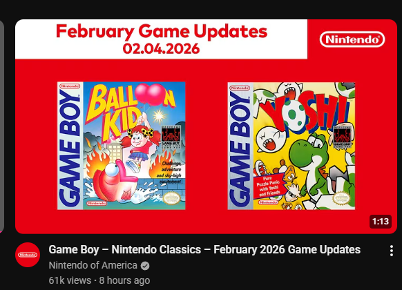 nintendo cant stop winning!switch 2 is getting these awesome 30 year old gameboy games added to their paid monthly subscription!https://www.youtube.com/watch?v=mwItGs1rLg4