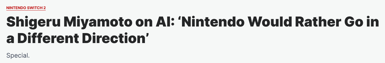 >>732265008>Nintendo would sooner go private than whore themselves for AI like Square-Enix didHonest, that's pretty fucking based.