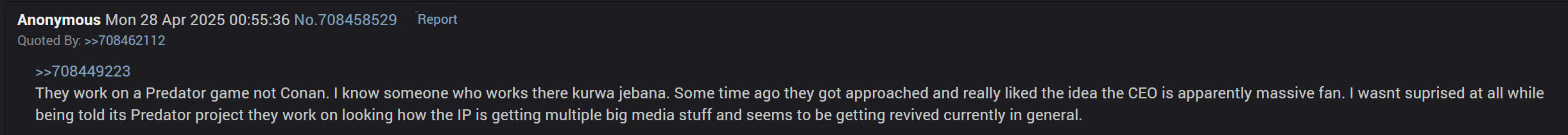 >>732271637oh here it is, Predator apparently. grain of salt of course