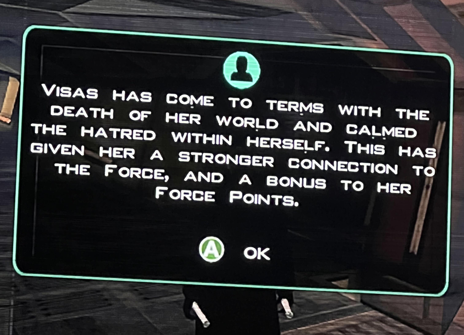 >>732273063On my recent playthrough I triggered Revan's hologram and subsequent Kreya's "betrayal" scene very early, right after Peragus, and it was so funny out of context.