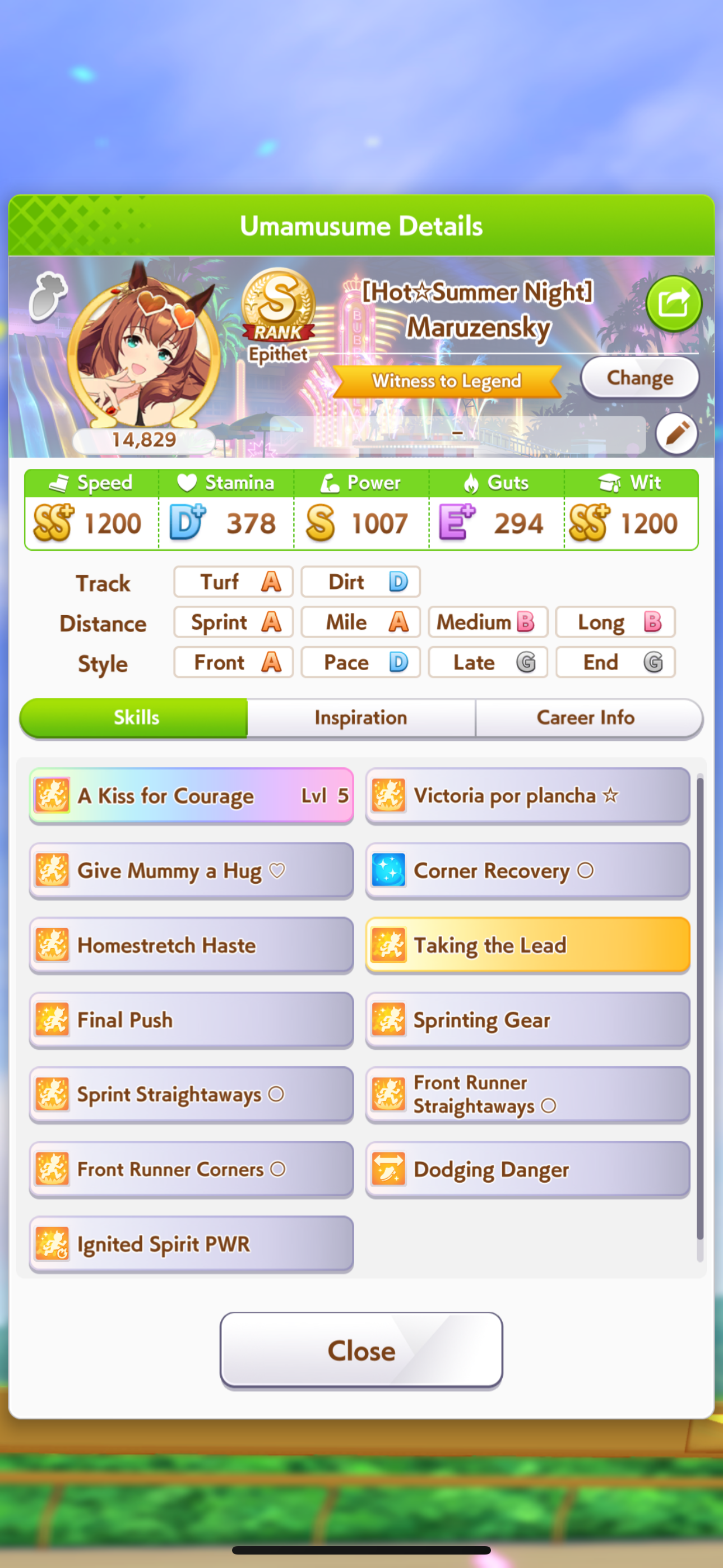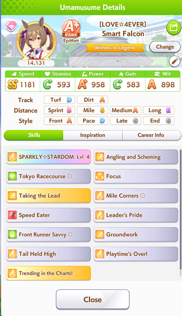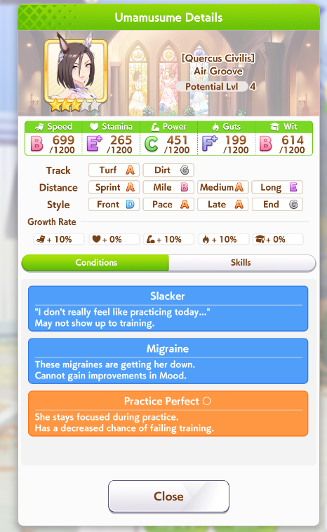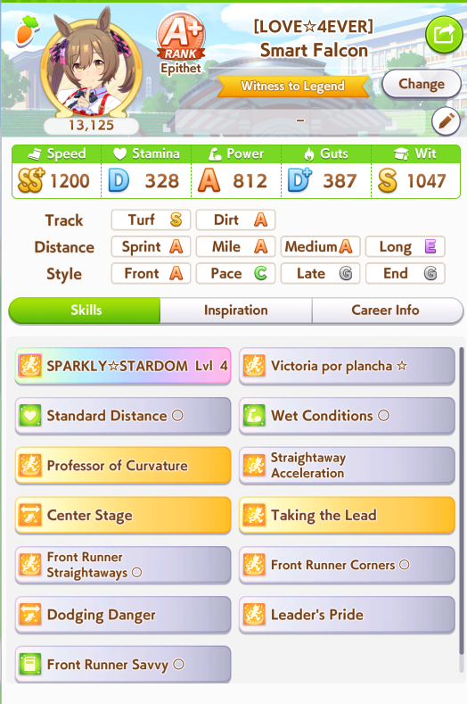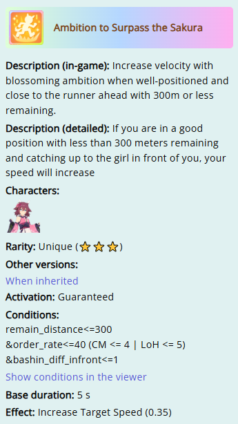 >>732279957You could use it if you really want to gamble on getting Taking The Lead if the rest of your deck has more Race Bonus to offset the stat, but keep in mind you have to win 3 coinflips to get the gold skill. And while it's nice it's not that much of a step up over the white version