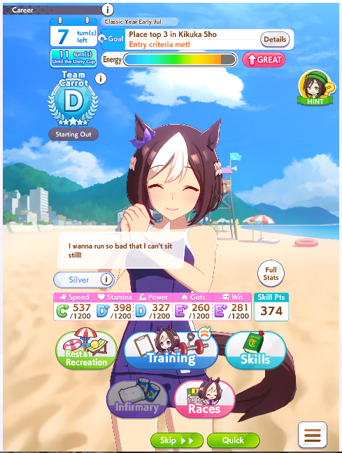 >>732280348Oooof, it was stamina, wasn't it? Should've run a couple extra mile or sprint races