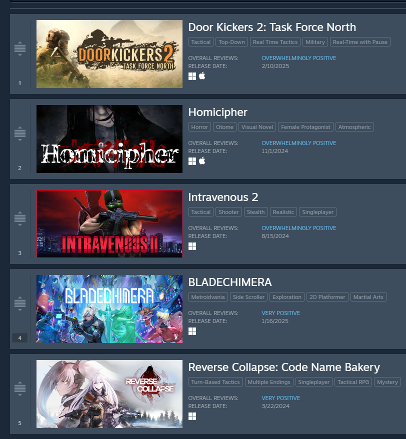 >>732295315You like raising sims, VNs, or roguelites?