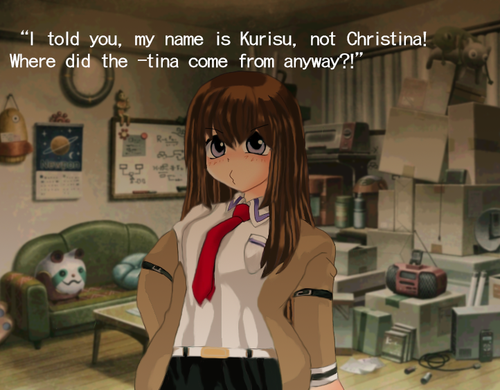 >>732281251Okabe calling her Kuristina was the funniest shit. I love that dude.