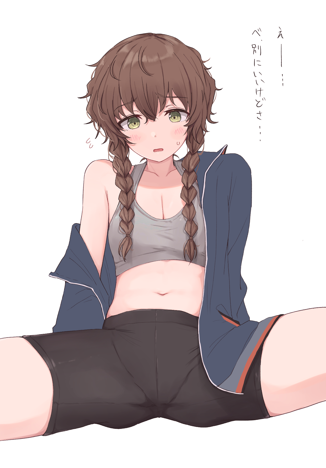 >>732289941Can you do suzuha, smiling smugly, topless, bike shorts on, and arms up showing off her armpits? It's for a friend.