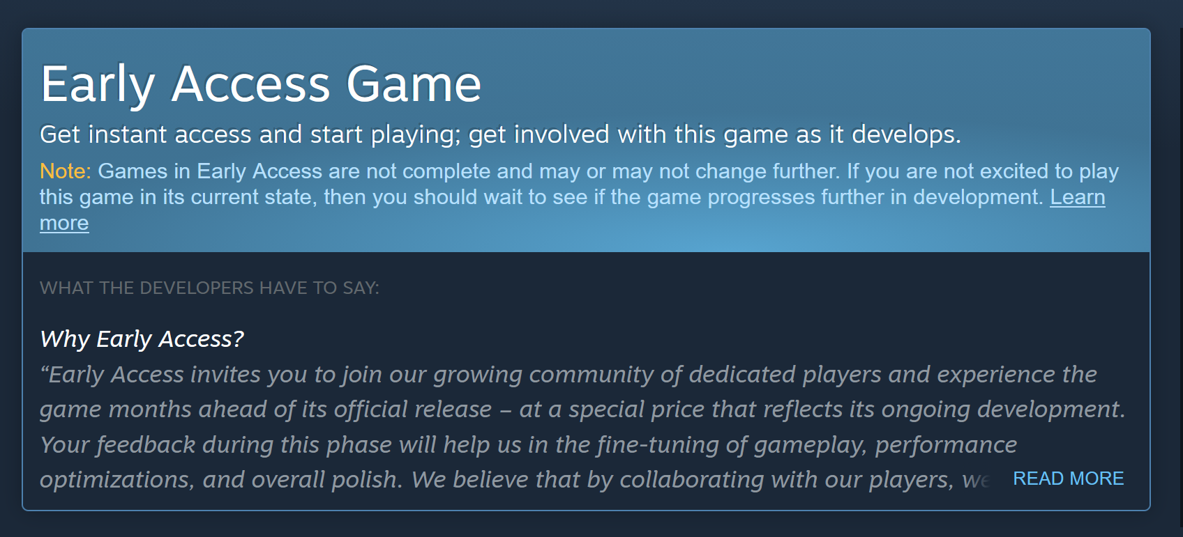 Funny how steamies never mention Early access when talking about how good steam is, even though it is VALVE who popularized and normalized this as a concept.