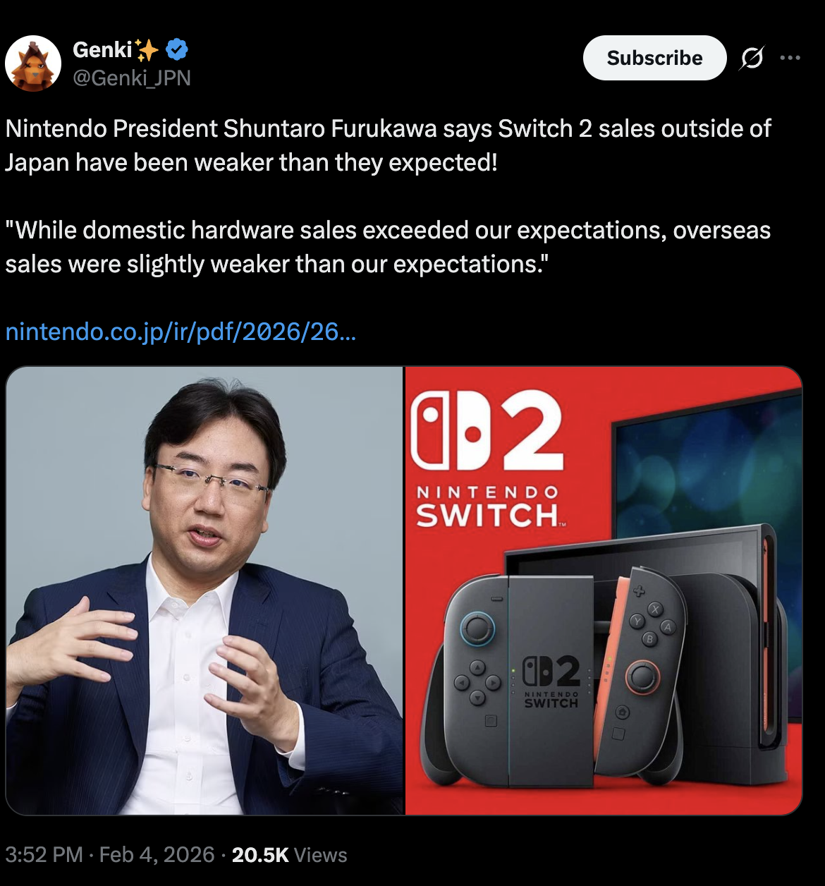 >>732281925I wonder if Europe saw a big hit too. The Switch 1 doing well there is somewhat of an anomaly by Nintendo standards in Europe, after all.