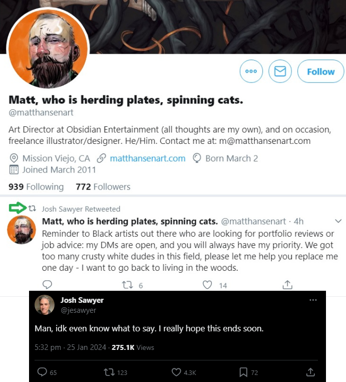 >>732292717>>732292653>>732292746>>732292760>>732292885>>732292887>"STOP RUINING MY FRANCHISES! MAKE YOUR OWN!">SJW makes their own franchise>SJW franchise 'fails'>SJWs no longer have containment franchises>"HA THATS WHAT YOU GET!">SJWs go back to intruding on your franchise>"NOOO MAKE YOUR OWN FRANCHISE!"Nevermind the fact the OP picture is misleading and a misquote. They aren't making TOW3 because they're refocusing on making DLC for Outer Worlds 2 because it was still a success despite not reaching MICROSOFT'S (Not Obsidian's!) sales expectations. They're not making Outer Worlds 3 right now because they're focusing on Pillars of Eternity again, TOW3 is definitely still going to happen someday in the interview. /v/ just has neanderthals who fall for misleading OPs and articles, and lies, again and again and again... As usual!
