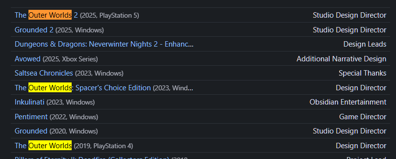 >>732304016hey dummy retard, his title was design director on outer worlds