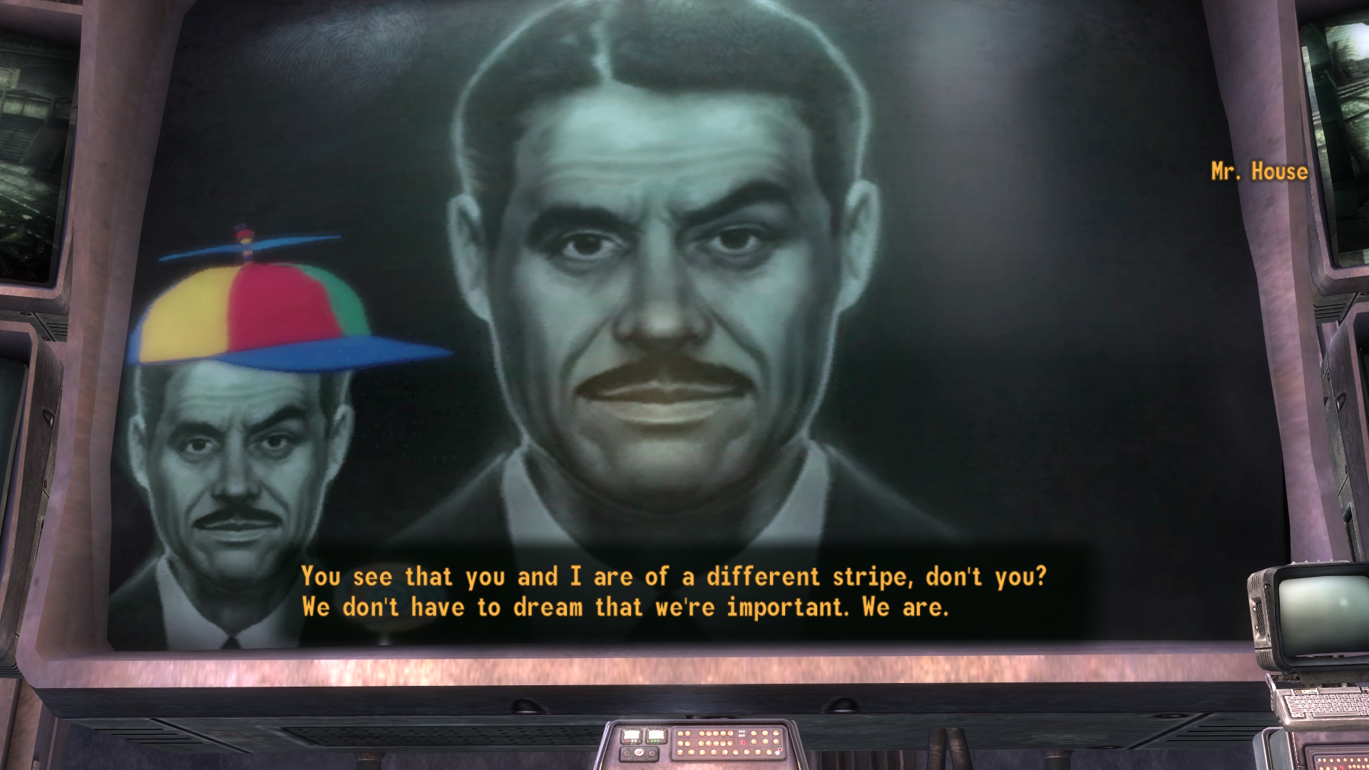 >>732295460Rene's House felt like a visionary who had truly thought centuries ahead to save himself, his city, and humanity - even if it was to gratify his ego. On a first playthrough, the game holds its cards close to its chest; no one but Benny knows anything real about House, and when you finally reach the Strip and are invited into the Lucky 38 you learn little more than them. You don't know that the only thing separating you from House's decrepit half-corpse is a false bookcase and a service elevator. All this is to say that House's presence is earned by how he's presented to the player, and Rene's delivery really captures how House simultaneously looks down at you like an insect in a terrarium while also keeping you at arm's length.I think Justin Theroux's performance was good, but the issue is that he's working with worse material. The show's House was so out-of-character that people were theorizing that he wasn't actually House himself, but Anthony House, his paranoid schizophrenic brother. Look where that theory went. Even in his better scenes, the show's House comes across more paranoid than calculating. It's a different characterization, completely.