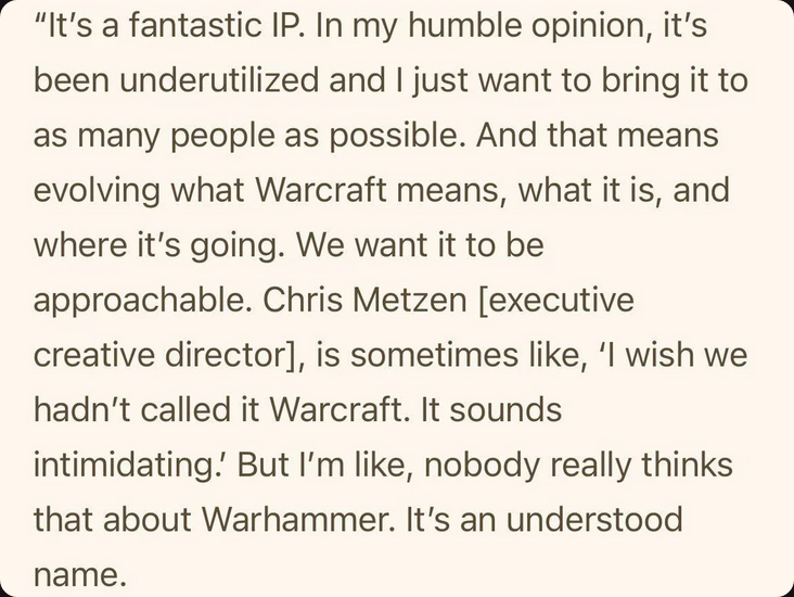 Metzen is such a pussy. This and the "My little girl watching the game asked why Sylvanas was in sexy clothes" shit really show how he went from a 'don't give a fuck' frat-nerd developer to a 'noooo think of the little girls' soft bitch.