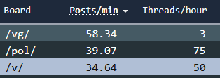>>732325739The most active gachashit general can create 6-10 threads per day at most since multiple threads at once are usually deletedCompare it to the constant /pol/ ragebait threads, twitter threads and other threads getting bumped by shitposters on top of HOURLY 20 new threads created in quick succession, niche threads are always at disadvantage on /v/, believe me, I had firsthand experience with it