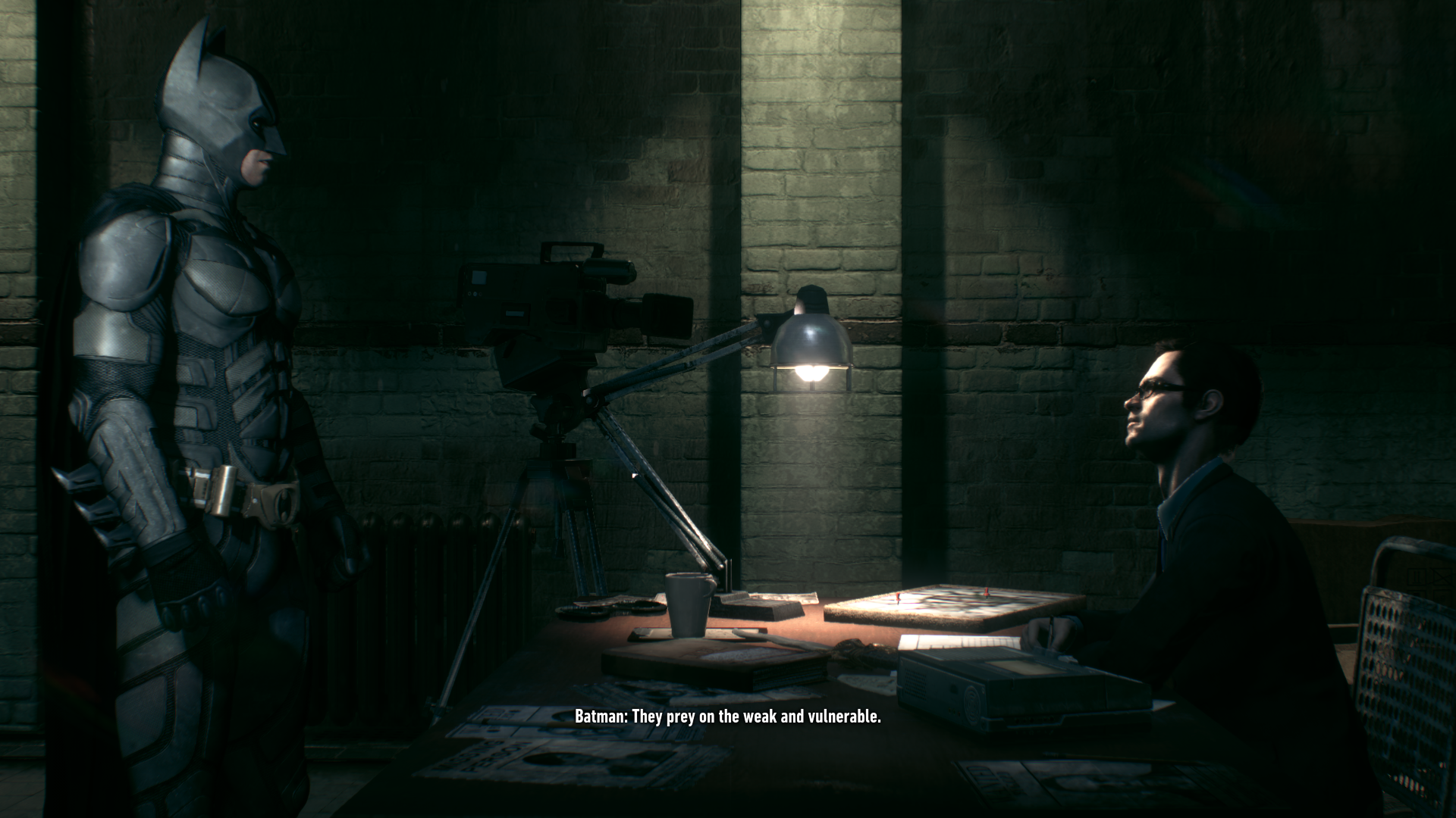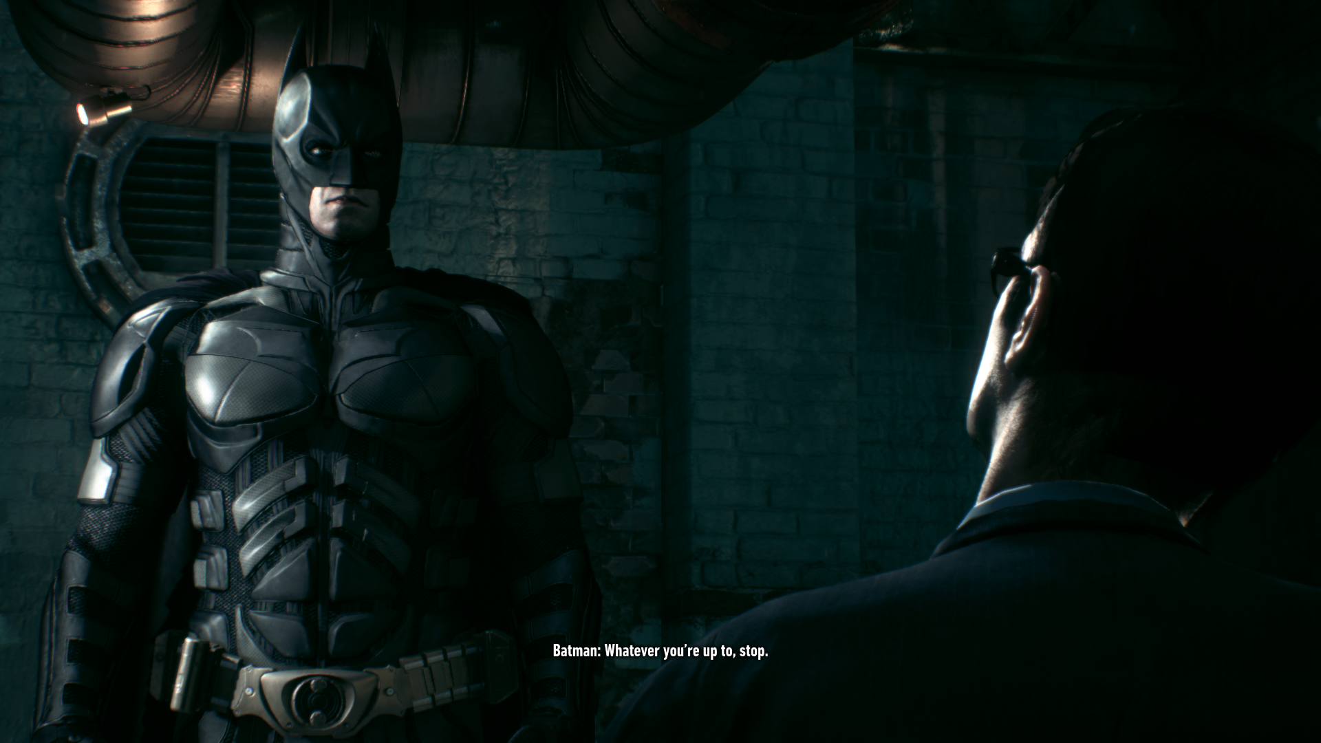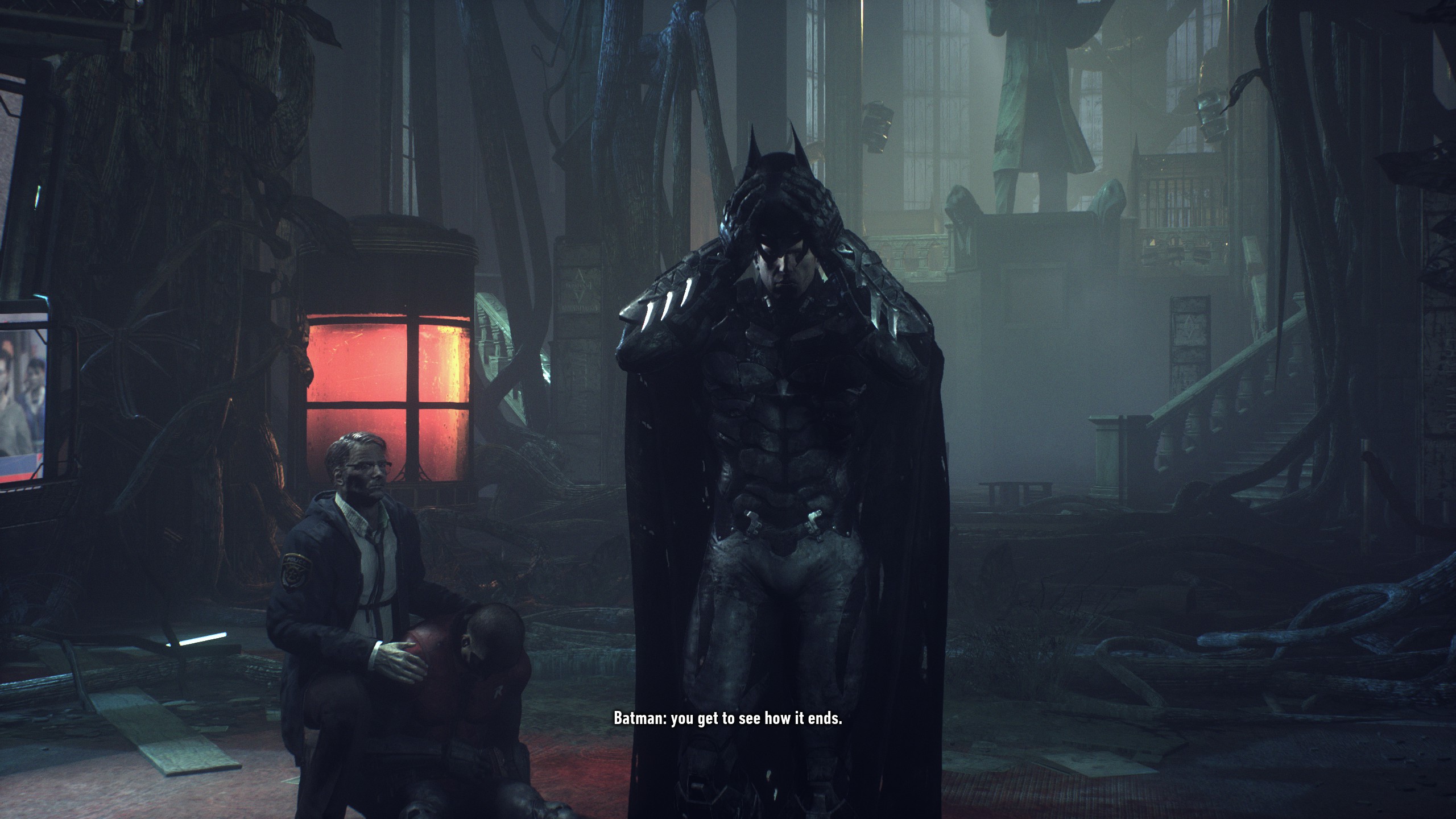 >>732316473I strongly disagree. Asylum had plenty of dark moments. Like for example, walking past a few guards next to the ambulance at the start of the game. When you come through that area again, you can see them hanging from the ceiling.With that said, the game had an overall upbeat tone where batman was there to kick ass. It wasn't some self-flagellating thing constantly talking about how he wants to give up on that life and how it's too much for him and how he needs to hang up the cowl. The atmosphere in Asylum was completely different from Knight.