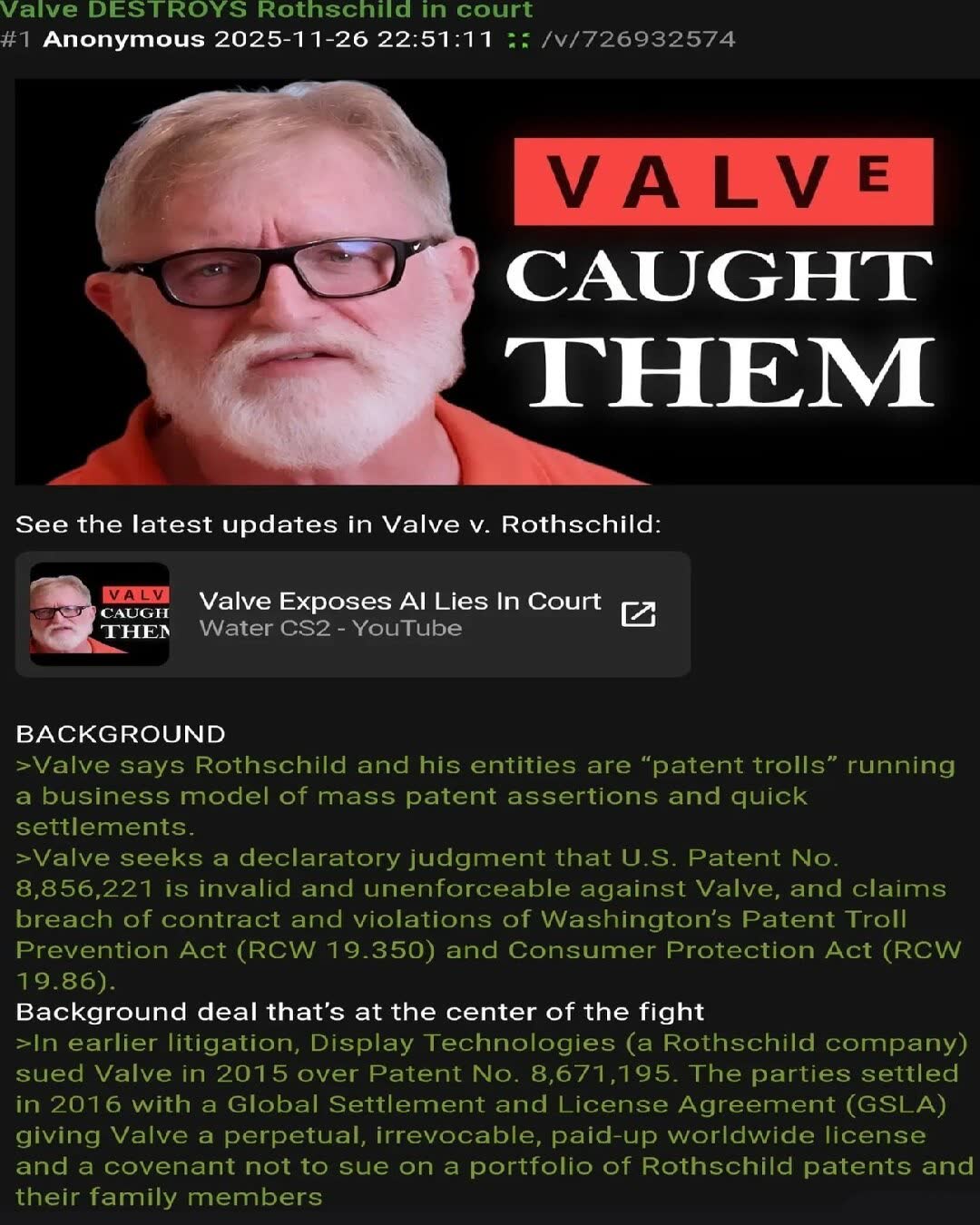 >Valve beats a Rothschild in court>suddenly endless shitpost threads against themHMMMMMMMMMMMMM