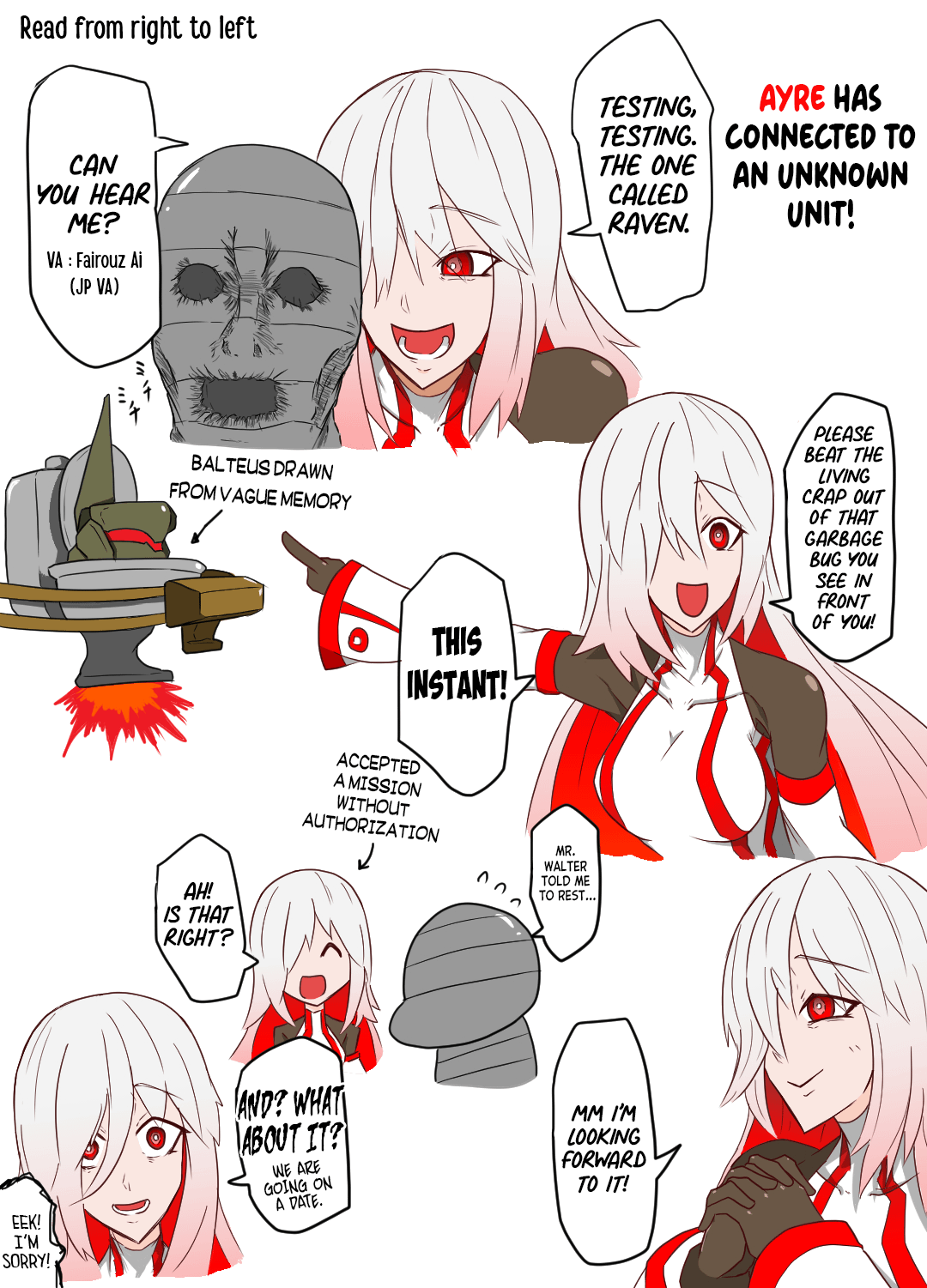 >armored core 6>ayrewhy the fuck does it sound like she's in love with you or something, is it supposed to sound like that?