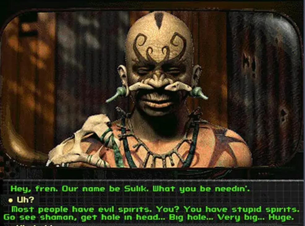 I remember talking to a friend of mine about fallout with Navajo Indians. He thought fallout 2 arroyo indians was Navajo so he had it in mind that fallout 2 took place in new Mexico. I told him it was like northern California, and he was disappointed since he imagined Navajo Indians with power armor and stuff Tribals in fallout aren't really fleshed out, essentially all of them are like white people that weren't in vaults that got absorbed by Indian tribes and became brown retards.