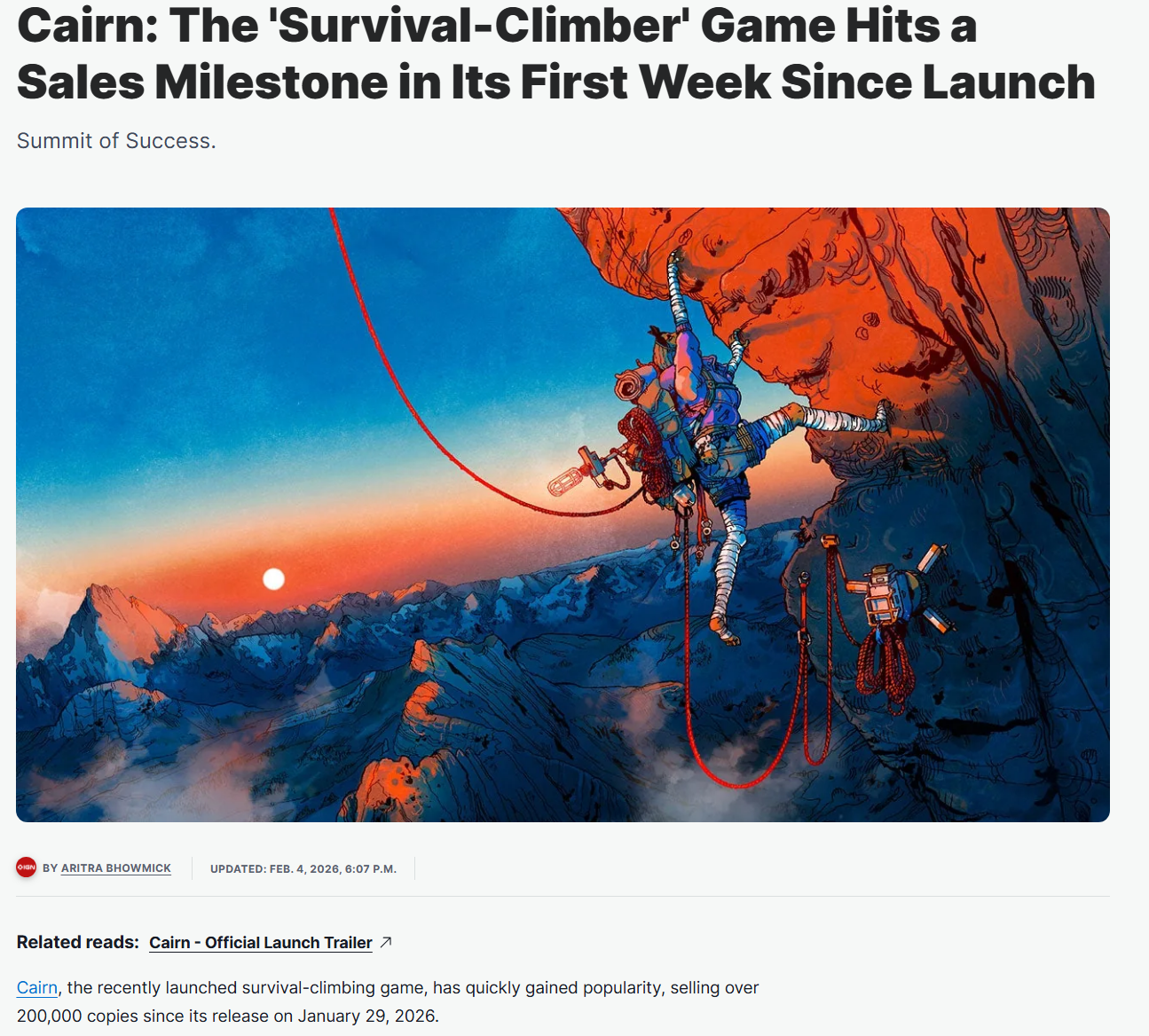 >Cairn: The 'Survival-Climber' Game Hits a Sales Milestone in Its First Week Since Launchgo woke=top the charts