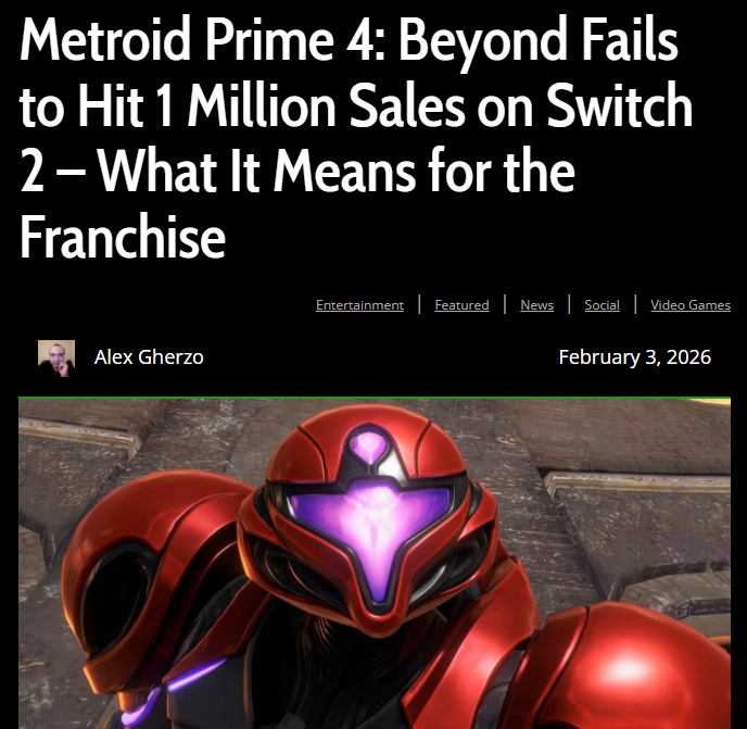 The fact even tendies are struggling to justify this game’s sales proves it’s a flop. Wow, one whole million. MP4 was a money sinkhole. Just put Metroid 6 in the bag bro.