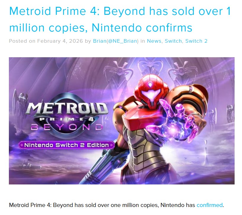 It did sell over a million copies, just not Switch 2 versions. But it's still pathetic.Look at the reception area of the wikipedia article if you want a laugh. The entire thing is sourced by two critics who like the game saying it's nothing like Metroid, but that's a good thing. Linear and that's good for new players. Companion characters being liked. All this praise of change meant for people that aren't even buying the game.