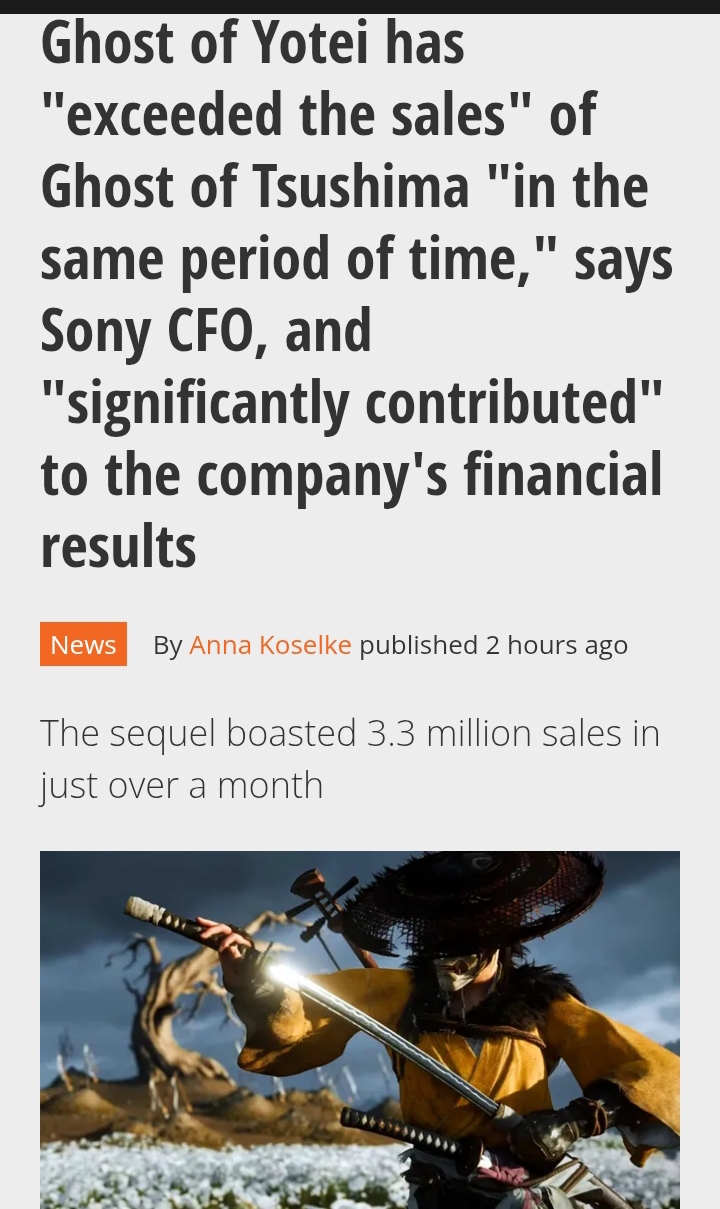 Apologize.https://www.gamesradar.com/games/action/ghost-of-yotei-has-exceeded-the-sales-of-ghost-of-tsushima-in-the-same-period-of-time-says-sony-cfo-and-significantly-contributed-to-the-companys-financial-results/