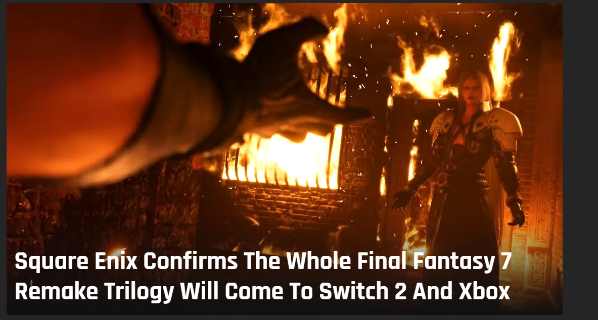 Square Enix confirmed that Final Fantasy VII Rebirth and the third game are coming to Switch 2 and other platforms.>"That’s not all, the remake trilogy will also be making its way to Switch 2, Xbox Series X|S and Xbox on PC as well as PlayStation 5, Steam and Epic Games Store!">When Final Fantasy 7 Rebirth's sales didn't exactly set Nibelheim ablaze, Square announced a major pivot toward a multiplatform-first future. There were other factors involved, of course, but this was certainly a strong contributor.>While Rebirth's arrival on further current-gen systems is hardly a shocker, it's a momentous occasion when Square gets the news out long before its own launch that Part 3 is en route to non-Sony hardware, as well. Both Remake and Rebirth were PlayStation exclusives from the start, after allWhy is squeenix suddenly dissing on sony so hard?