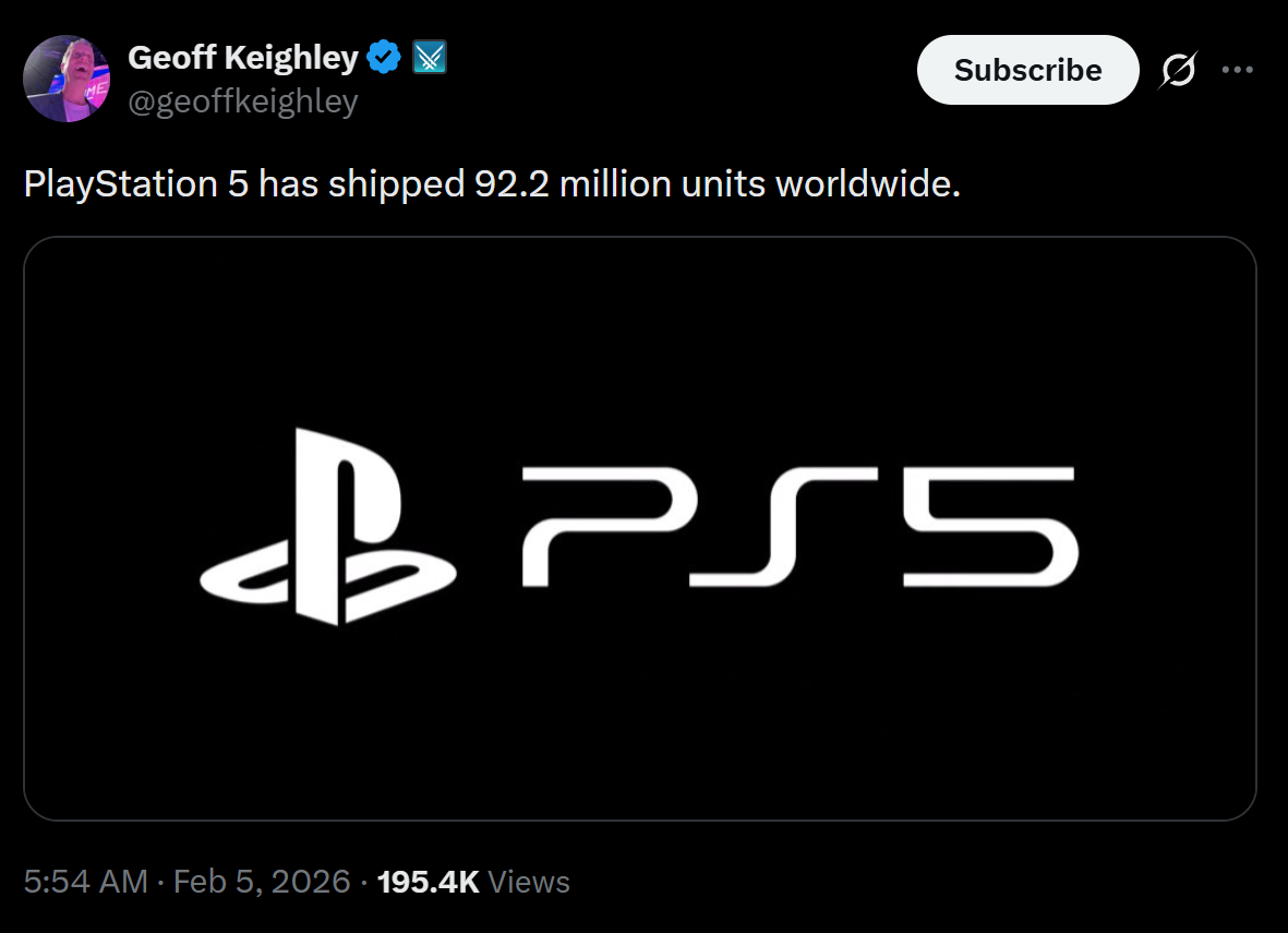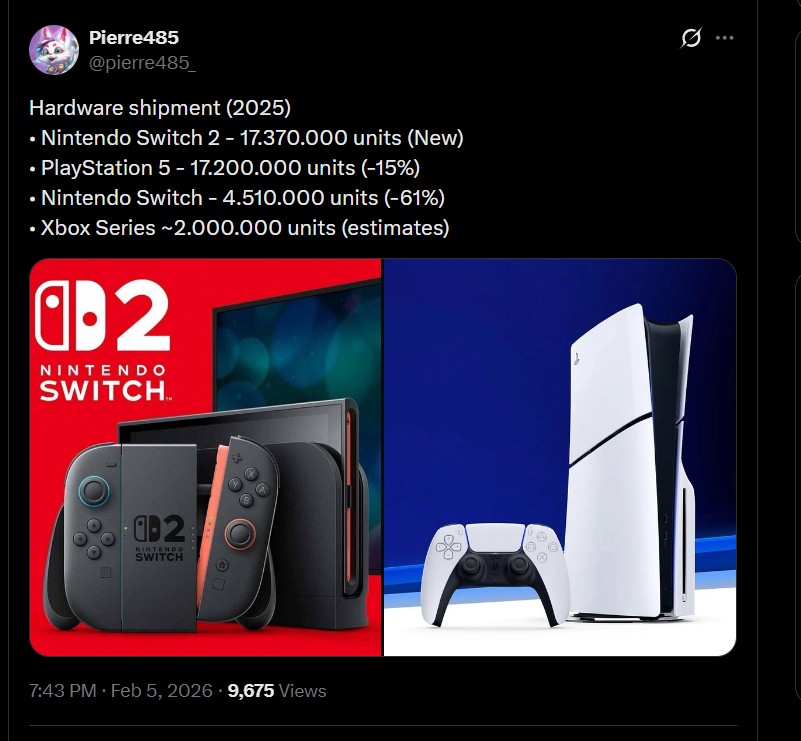 >>732339438PS5 outsold Switch 2 in final quarter of 2025 worldwide.